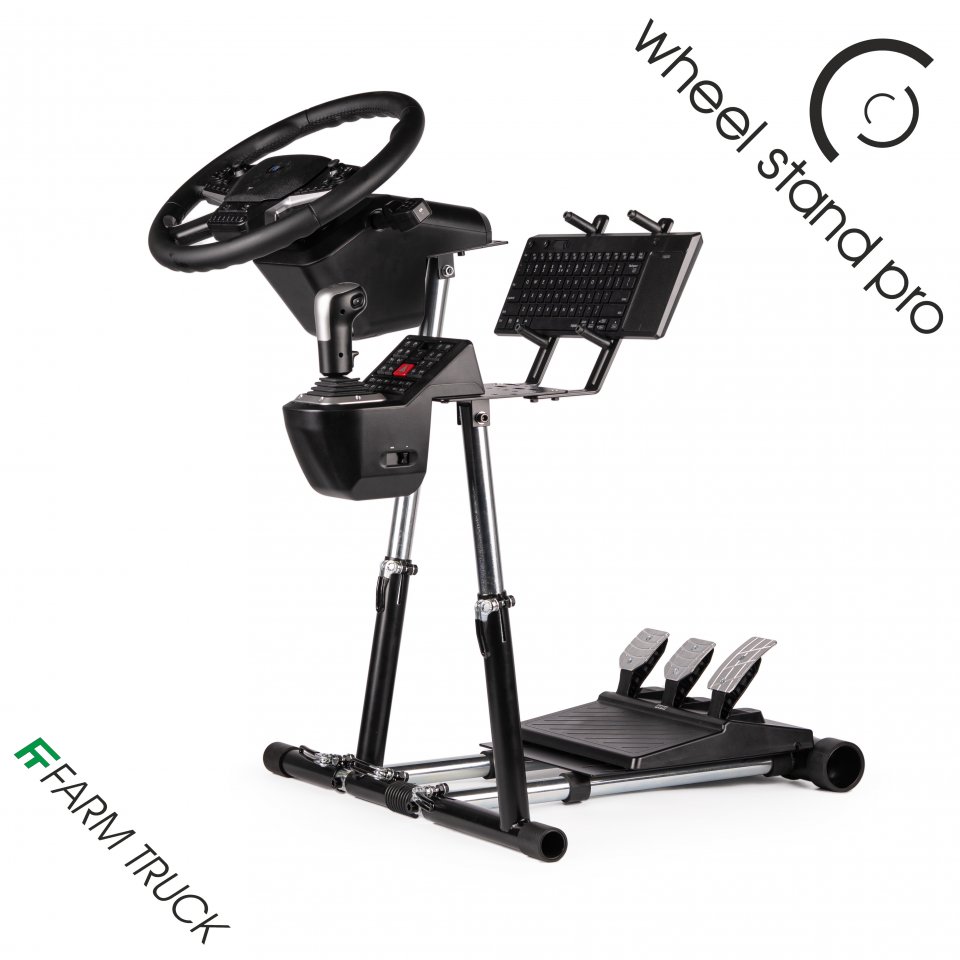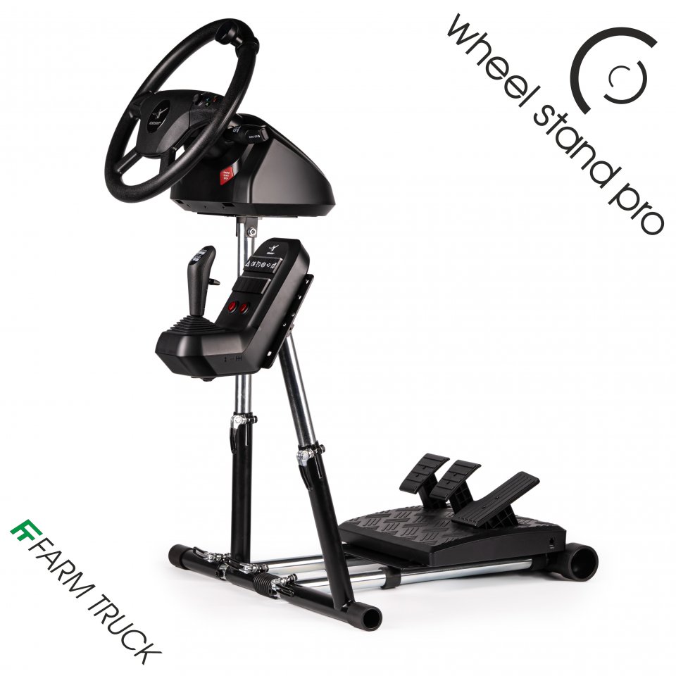 Wheel Stand Pro Farm Truck on monipuolinen rattiteline, joka sopii erityisesti maatalous- ja kuorma-autopelien simulaattoreihin. Se on valmistettu kestävästä metallista ja suunniteltu tukemaan useita suosittuja ohjausjärjestelmiä, kuten Aerosoft, Hori, Thrustmaster, Logitech, Fanatec Direct Drive ja Moza. Telineen säätömahdollisuudet ovat laajat, joten se mukautuu eri kokoisille pelaajille ja erilaisille istuimille tai sohville.