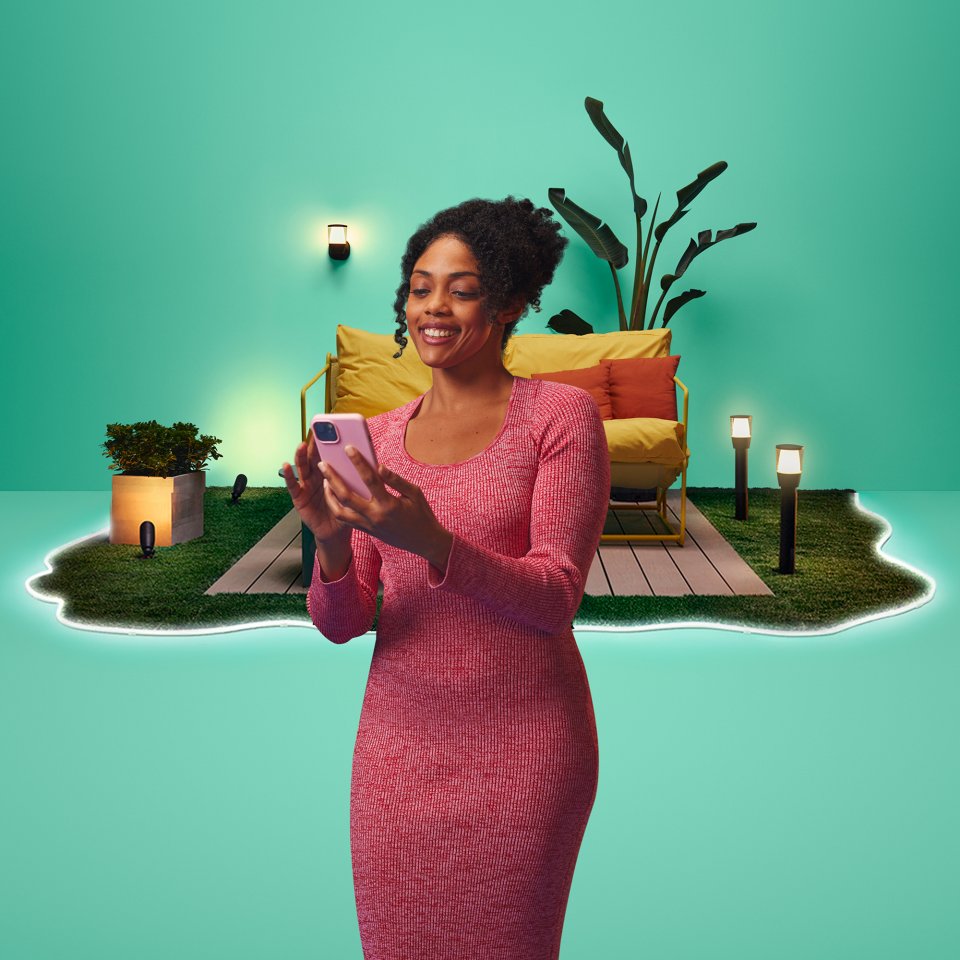 Valitse mieleisesi miljoonista värillisen valon sävyistä piristävästä viileästä valkoisesta valosta aina pehmeään lämpimään valkoiseen valoon ja luo paras tunnelma ulkoaktiviteetteja varten. Voit käyttää myös esiasetettua dynaamista valotilaa, kuten Valtameri-, Metsä- tai Juhlat-tilaa, jolla voit luoda hämmästyttävän tunnelman ja kohottaa mielialaasi. Ajoita ulkovalosi syttymään joka päivä, ennen kuin tulet kotiin, niin näet ympäristösi selvästi ja tunnet olosi turvalliseksi. Säästä energiaa asettamalla valot sammumaan automaattisesti aamulla tai kun niitä ei tarvita.