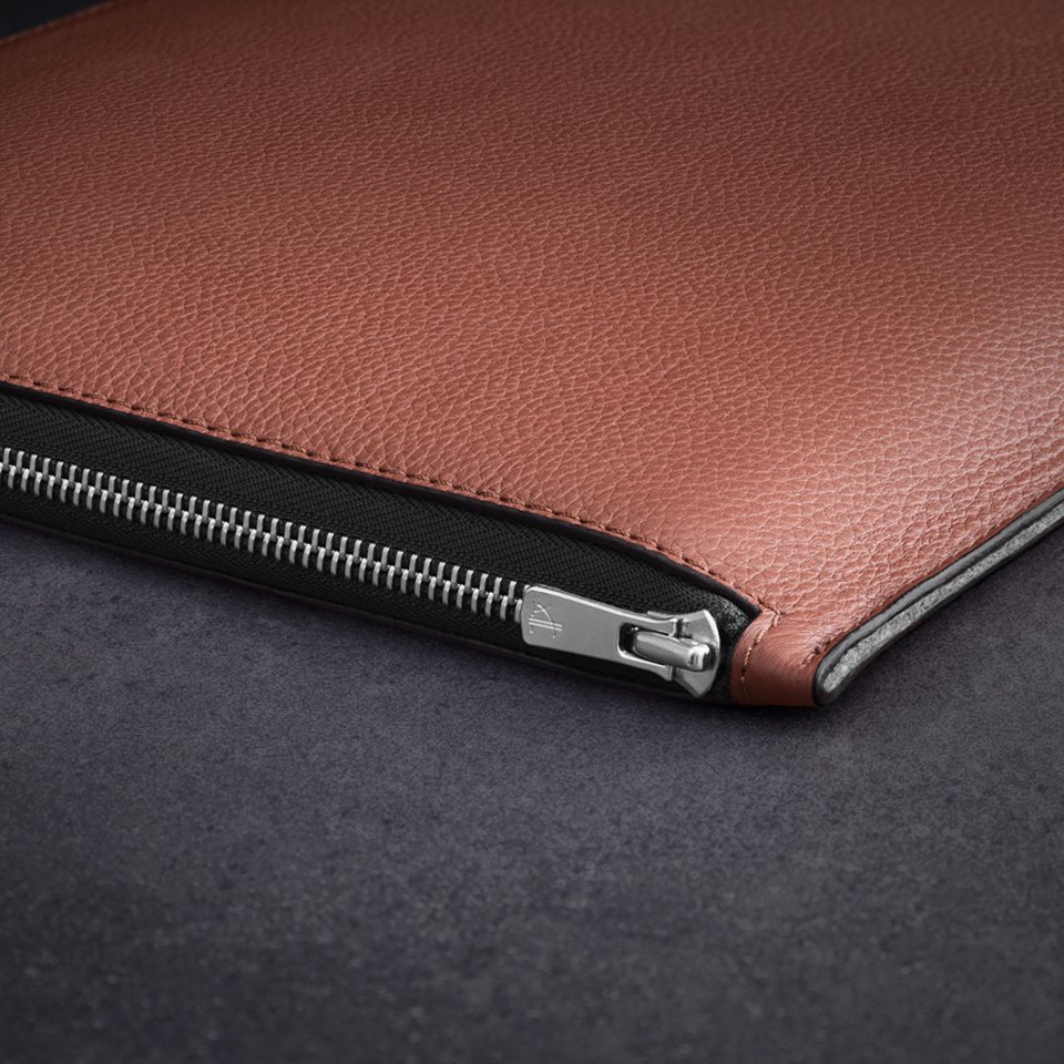 Sisätaskuissa on tilaa muutamille päivittäisille tarvikkeillesi, ja ne kulkevat kaikki turvallisesti MacBookin mukana YKK:n METALUXE:n avulla, joka on metallinhohtoinen premium-muovivetoketju. Suojataskun ulkopinta on valmistettu skandinaavisesta alkuperää olevasta full-grain nahasta ja sisäpuoli on vuorattu 100 % luonnonvillahuovalla.