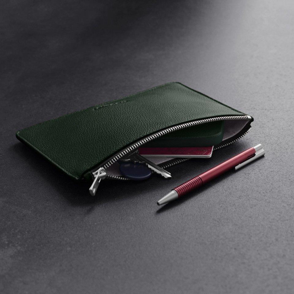Tämä litteä tarvikelaukku kätkee tyylikkäästi päivittäiset tavarasi yhteen ja pitää ne järjestyksessä yhdessä paikassa. Tarvikelaukussa on yksi päälokero. Laukun ulkopinta on valmistettu skandinaavista alkuperää olevasta täysjyvänahasta ja sisäpuoli on vuorattu pehmeällä ja kestävällä mikrokuidulla. Vetoketju on YKK EXCELLA, yksi maailman hienoimmista metallivetoketjuista, valmistettu Japanissa.
