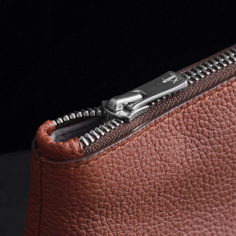 Tämä tarvikelaukku kätkee päivittäiset välttämättömät tavarasi tyylikkäästi yhteen ja pitää ne järjestyksessä yhdessä paikassa. Sisäpuolella on isompi päälokero sekä kaksi litteää taskua helpottamaan järjestystä. Laukun ulkopinta on valmistettu skandinaavista alkuperää olevasta full-grain nahasta ja sisäpuoli on vuorattu pehmeällä ja kestävällä mikrokuidulla. Vetoketju on YKK EXCELLA, yksi maailman hienoimmista metallivetoketjuista, joka on valmistettu Japanissa.