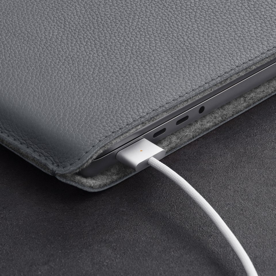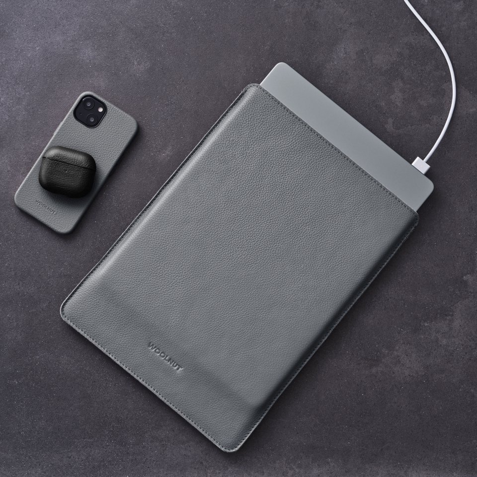 Woolnut Leather Sleeve -suojatasku 14″ MacBook Pro, harmaa