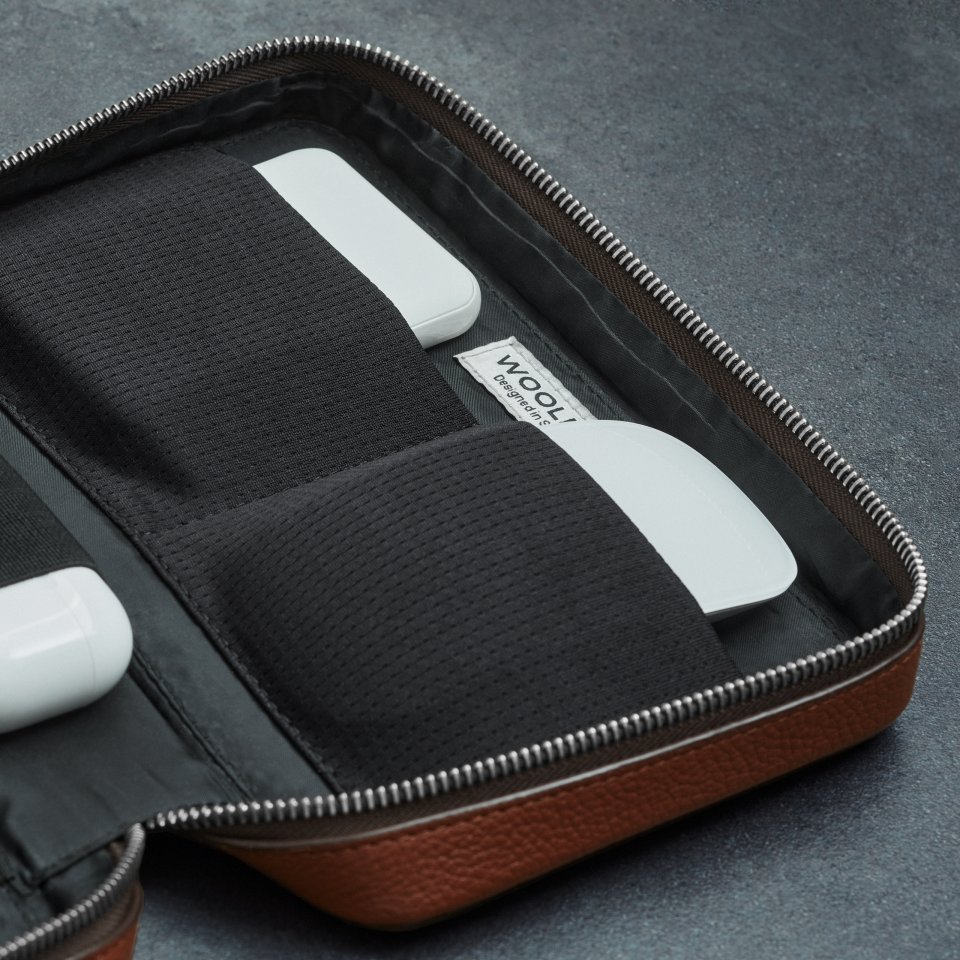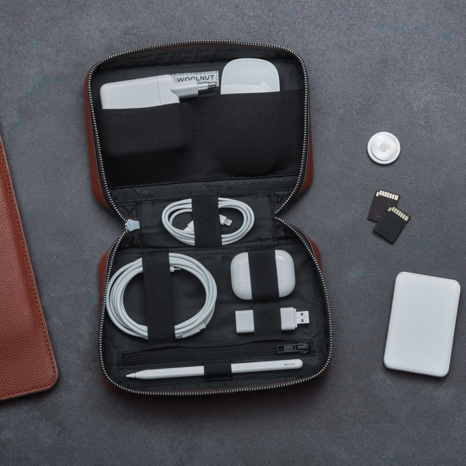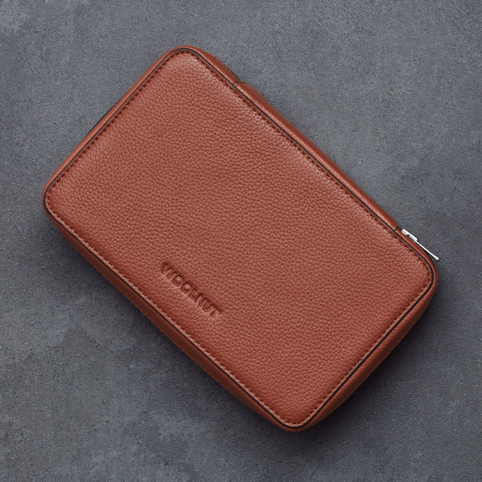 Woolnut Leather Tech Organizer -tarvikelaukku, konjakki