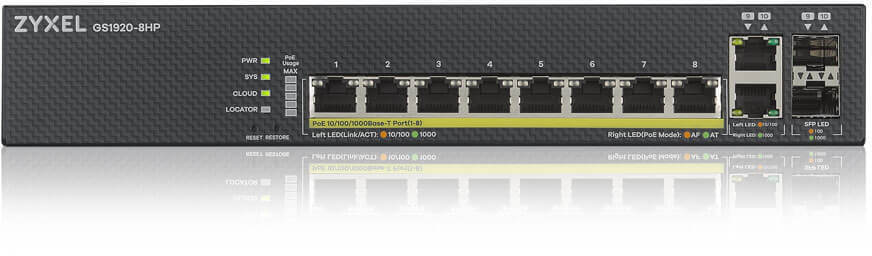 ZyXELin GS1920-tuotemallisto tarjoaa ominaisuuksia, suorituskykyä ja joustavuutta, joita tarvitset verkkosi optimoimiseen – lisäksi sen energiatehokkuus auttaa pienentämään sähkölaskuasi. ZyXEL GS1920 -sarjan 8-porttinen GbE Smart Managed -kytkin maksimoi suorituskyvyn ja täyttää pienten ja keskisuurten yritysten lisääntyvät verkkovaatimukset. GS1920-sarja on ihanteellinen varmistamaan 10/100- ja Gigabit yhteydet. Lisäksi sarja tukee tulevien laajennusten sujuvaa IPv6-migraatiota.