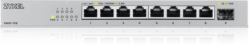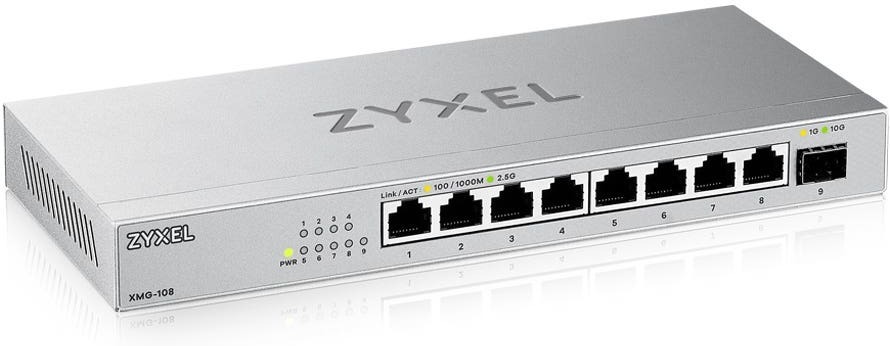 ZyXEL XMG-108 on 8-porttinen 2.5 Gigabitin ethernet kytkin, joka soveltuu hyvin pieneen koti- tai lähiverkkoon. ZyXEL XMG-108 kaikki kahdeksan porttia tukevat 2.5G nopeutta. Laite tunnistaa siihen liitettyjen verkkolaitteiden nopeuden ja duplex tilan automaattisesti joten käyttöönotto on nopeaa ja helppoa.